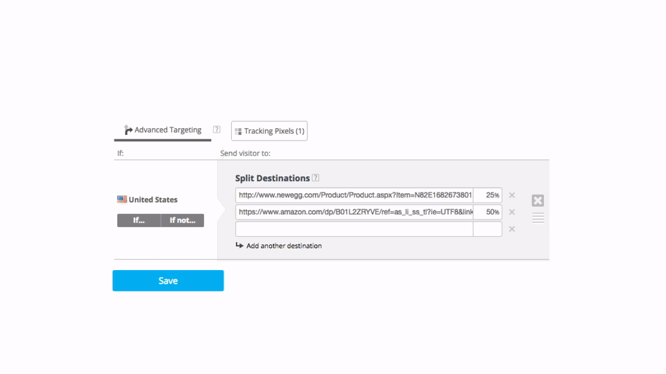 Edit your links to add advanced targets, pixels and change the default destination in real time, even after they're live, to avoid those headaches.